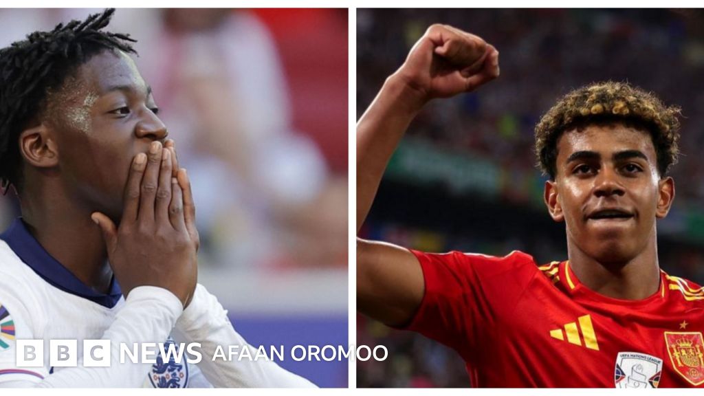 ![Koobiii Maayinuu, taphataa Ingilaandii fi Lamiin Yamaal [17] taphataa Ispeen](https://ichef.bbci.co.uk/ace/ws/640/cpsprodpb/9701/live/d11949d0-4196-11ef-9e1c-3b4a473456a6.jpg.webp)
