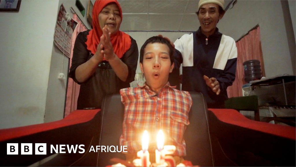 Tio, d'Indonésie, est né sans bras ni jambes. Il aime jouer à des jeux vidéo et se tient au courant de tous les derniers événements sur son téléphone portable.