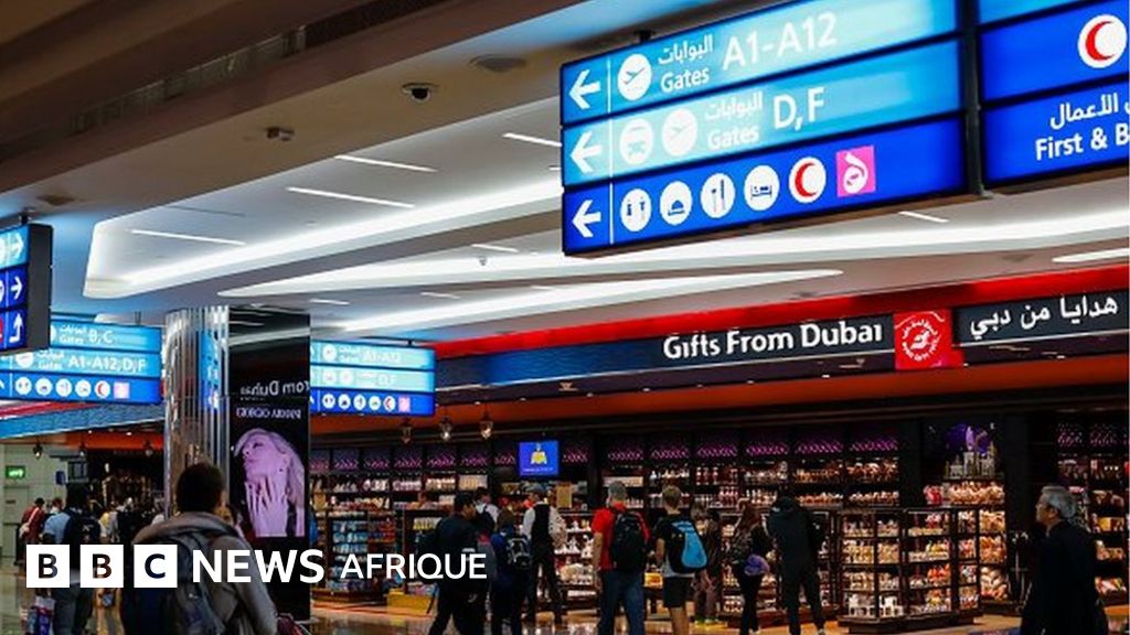 Légende image, L'aéroport de Dubaï est devenu le premier du monde en termes de passagers internationaux depuis qu'il a surpassé celui de Londres-Heathrow en 2014.