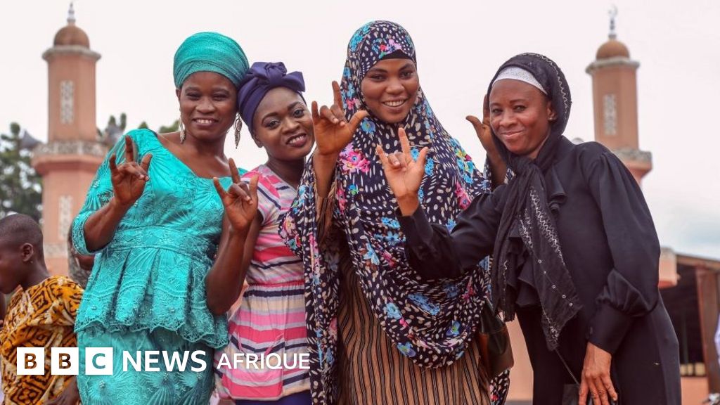 Légende image, Des musulmans rassemblés à l'extérieur du Stade des martyrs pour célébrer l'Aïd el-Kébir à Kinshasa en RDC, le dimanche 11 août 2019.