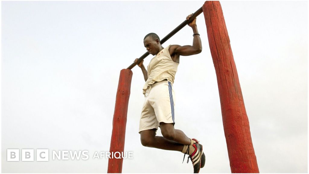 Un homme fait des tractions le long de la plage le 7 juin 2004 à Dakar, Sénégal.