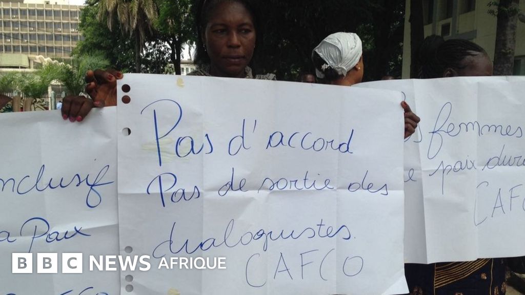 Elles exigent un accord en brandissant des pancartes où on peut lire "Pas d'accord, pas de sortie des dialoguistes", "Accord inclusif, gage de la paix".