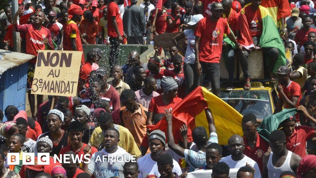 Légende image, Des Guinéens dans la rue pour protester contre une éventuel 3e mandat du président Alpha Condé