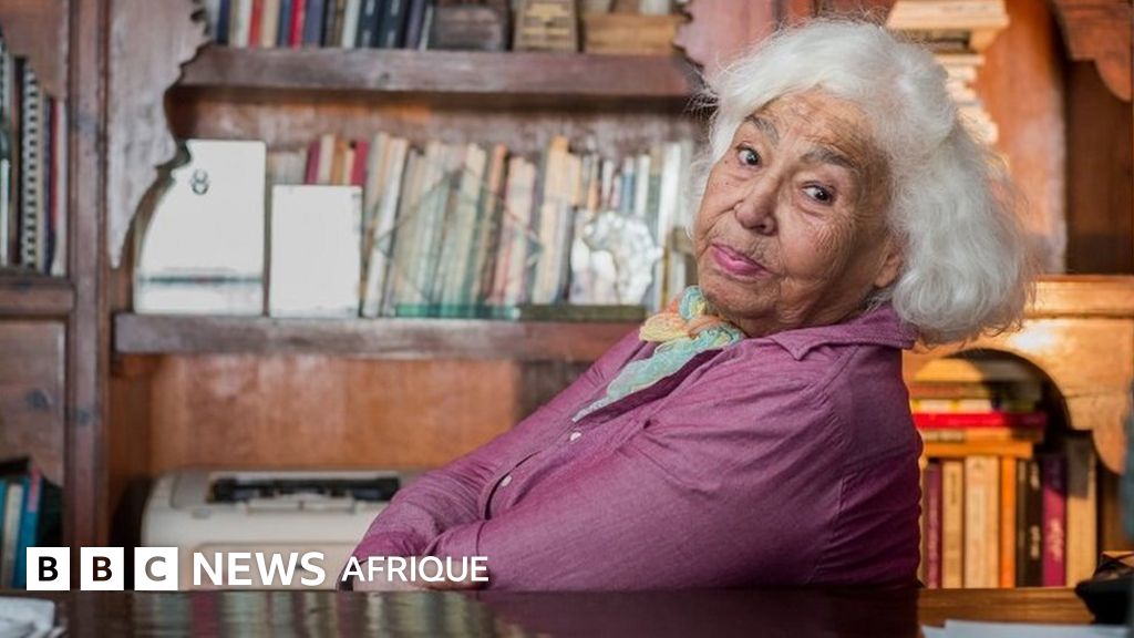 Légende image, Nawal el Saadawi dans sa maison en septembre 2015 au Caire, en Égypte.