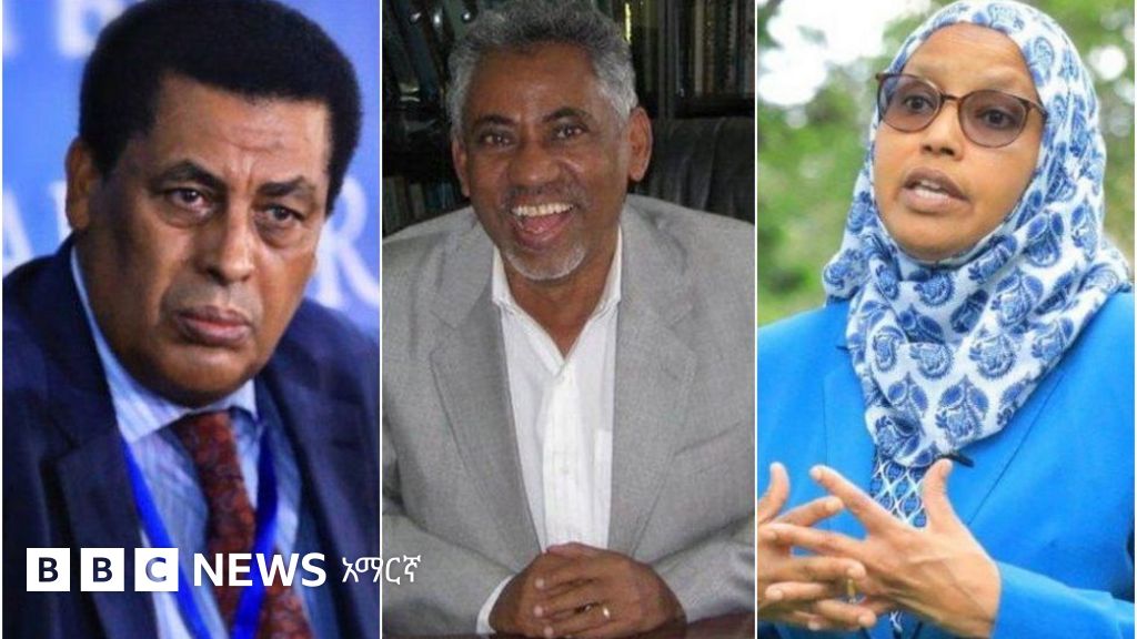 የምስሉ መግለጫ, አምባሳደር ዲና ሙፍቲ፣ የኤርትራው ማስታወቂያ ሚኒስትር የማነ ገብረ መስቀል፣ የኢትዮጵያ መከላከያ ሚኒስትር አይሻ መሐመድ (ከግራ ወደ ቀኝ)