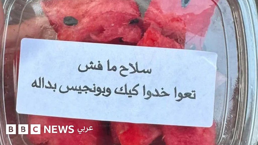 أما "ود"، فكتبت تحت صورة لعلبة كاسترد كُتب عليها "ما في تسليم سلاح": في مشهد رمزي لافت "حاضنة حزب الله" توزع كاسترد وبطيخ كُتب عليه: "ما في تسليم سلاح".