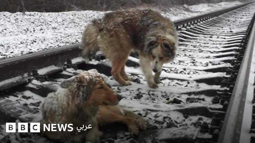 رفض كلب التخلي عن شقيقته المصابة على أحد خطوط السكك الحديدية في أوكرانيا.