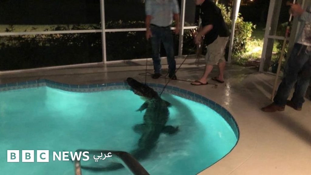 نشرت شرطة ولاية فلوريدا الأمريكية صورا ومقطع فيديو تصور تمساحا من نوع "القاطور الأمريكي" في بركة سباحة في منزل إحدى العوائل.