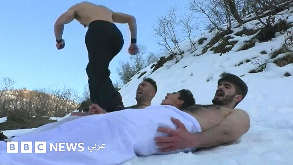 يدرب فريق رياضي بقضاء بنجوين في إقليم كردستان العراق أعضاءه على الفنون القتالية وسط الصقيع.