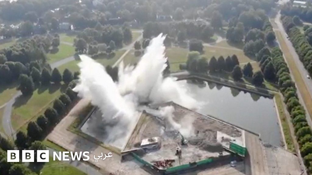وقد جرى استخدام معدات خاصة لهدم النصب الذي كان قائما بارتفاع 79 مترا.