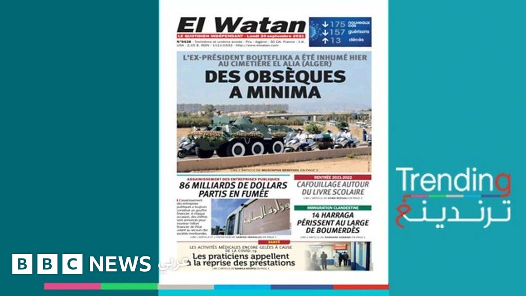 ردود فعل غاضبة على وسائل التواصل الاجتماعي بعد نشر صحيفة الوطن الناطقة بالفرنسية صورة لجنازة الرئيس الراحل عبد العزيز بوتفليقة بعد إخفاء مئذنة الجامع الأعظم