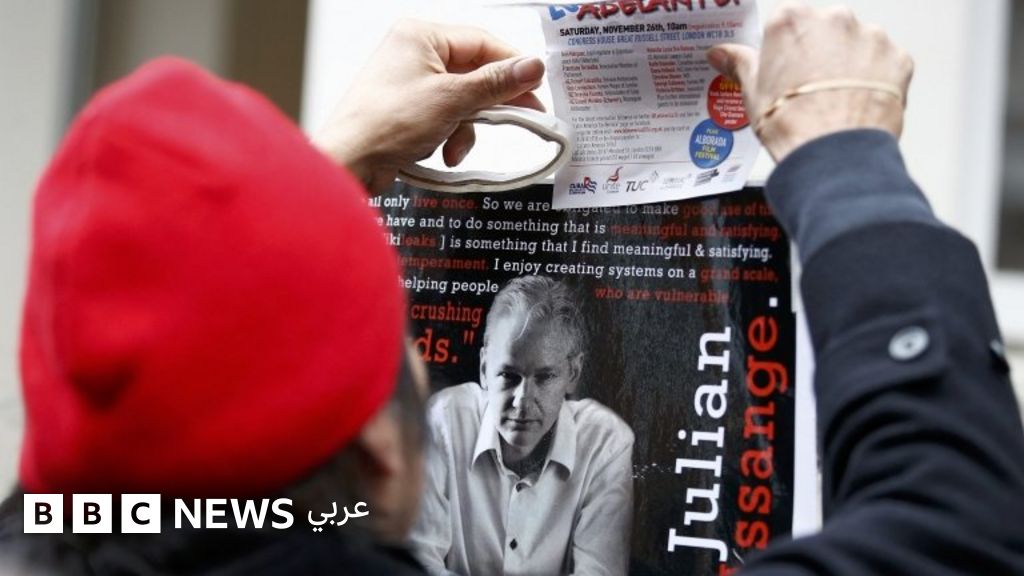 التعليق على الصورة، لجأ أسانج إلى سفارة الإكوادور في لندن منذ 4 سنوات