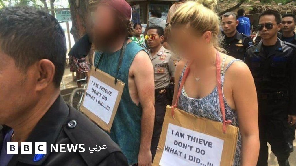 نشرت الأسبوع الماضي صور سائحين غربيين لم تحدد هويتهما وهما يسيران في "مسيرة عار" مهينة حول جزيرة في إندونيسيا بسبب ارتكابهما - بحسب ما قيل - جريمة السرقة.