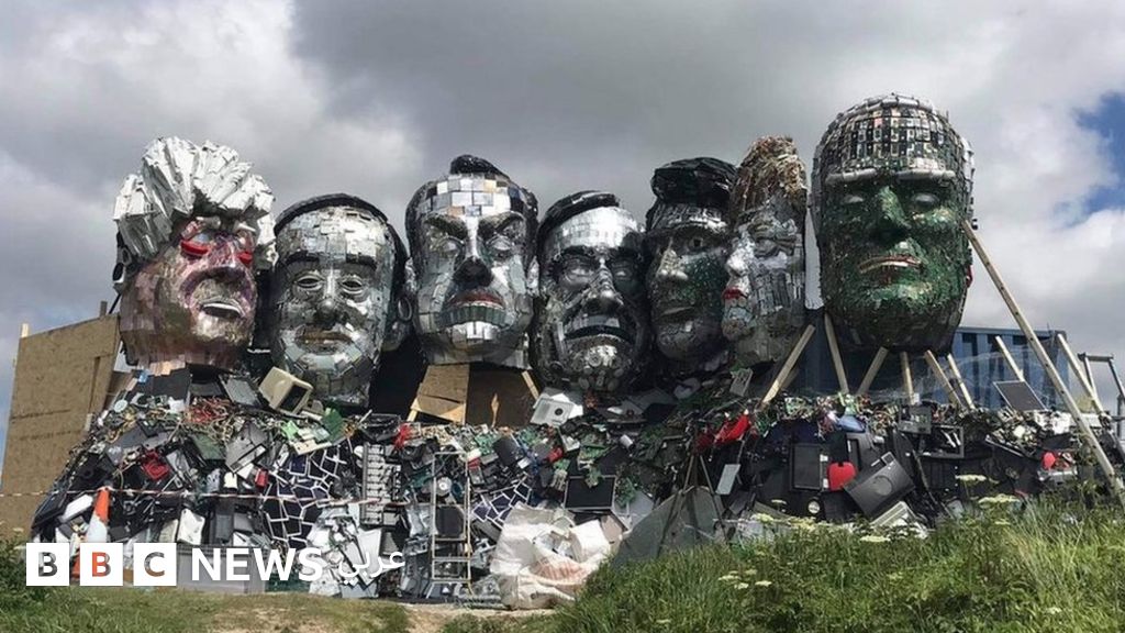نحات يصنع تمثالا لرؤوس قادة الدول السبع من نفايات إلكترونية في كورنوال حيث يعقدون قمتهم