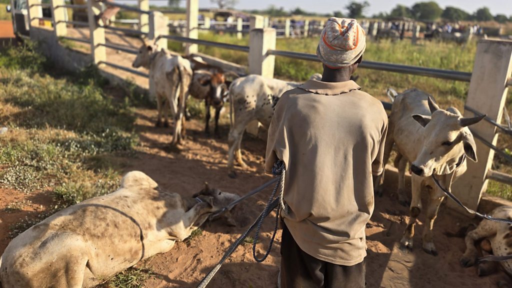(Image: A livestock market in northern Ghana. Traders, including those pictured, told the BBC they believe some of the livestock is contraband)