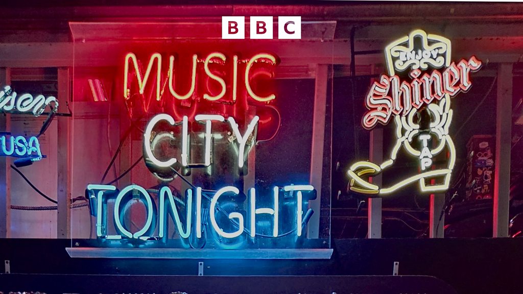 (Picture: Neon lights spelling 'Music City Tonight' at Robert's Honky Tonk, Nashville. Credit: BBC)