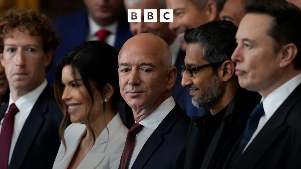 (Picture: Guests including CEO of Meta Mark Zuckerberg; Amazon founder Jeff Bezos; CEO of Google Sundar Pichai; and CEO of Tesla, SpaceX, X and xAI Elon Musk, arrive before the 60th Presidential Inauguration in Washington, on Monday, 20th of January 2025. Credit: Getty Images)