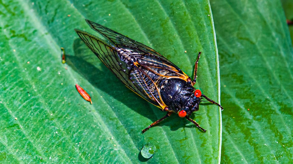 (Photo:Cicada on Hosta Leaf - stock photo Credit: KenWiedemann via Getty Images)