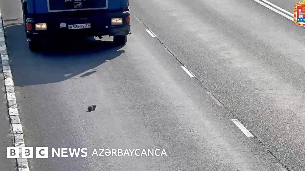 Rusiyanın Kalininqrad bölgəsində sürücü yolda qalan pişik balasını xilas edir.