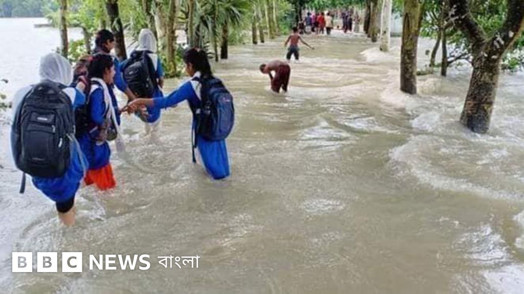 স্থানীয় সাংবাদিক সুমন ভৌমিক বিবিসি বাংলাকে বলেন, “গত কয়েকদিনের বৃষ্টিপাতের কারণে আগে থেকেই পানি জমেছিল বিভিন্ন জায়গায়। সেই সাথে নতুন করে বন্যার পানি আসতে শুরু করে মঙ্গলবার থেকে”।