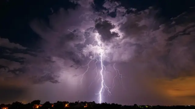 ছবির ক্যাপশান, ঢাকার আকাশে বিদ্যুৎ চমকাচ্ছে