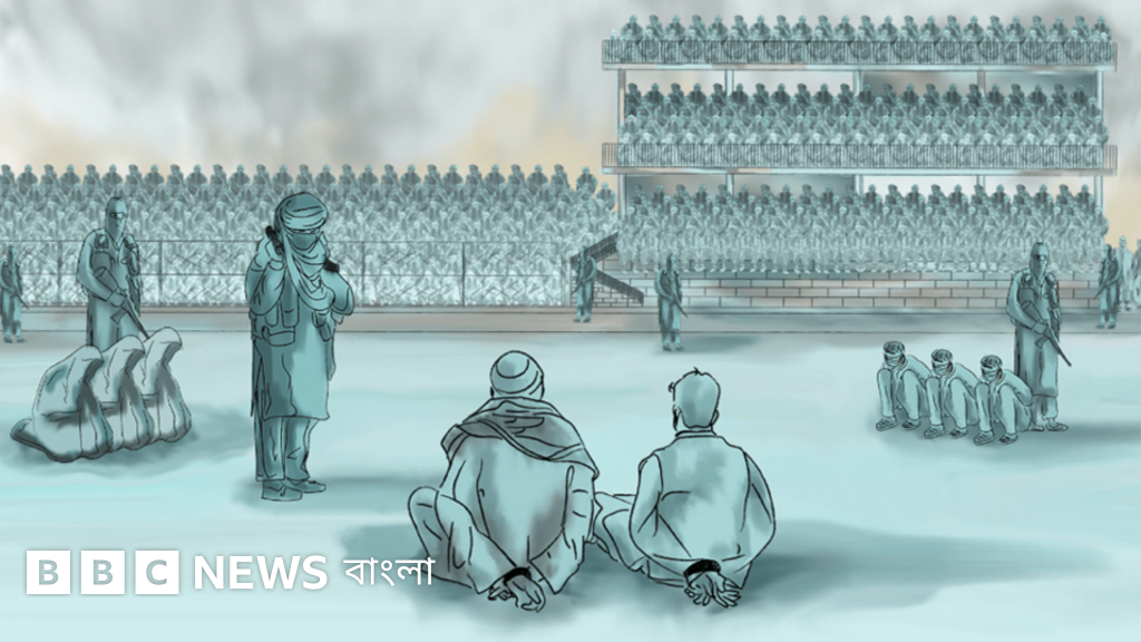 তিনি বিবিসিকে বলেন, "অভিযুক্ত ব্যক্তিদের স্টেডিয়ামের মাঝখানে ঘাসের ওপর বসিয়ে রাখা হয়েছিল।