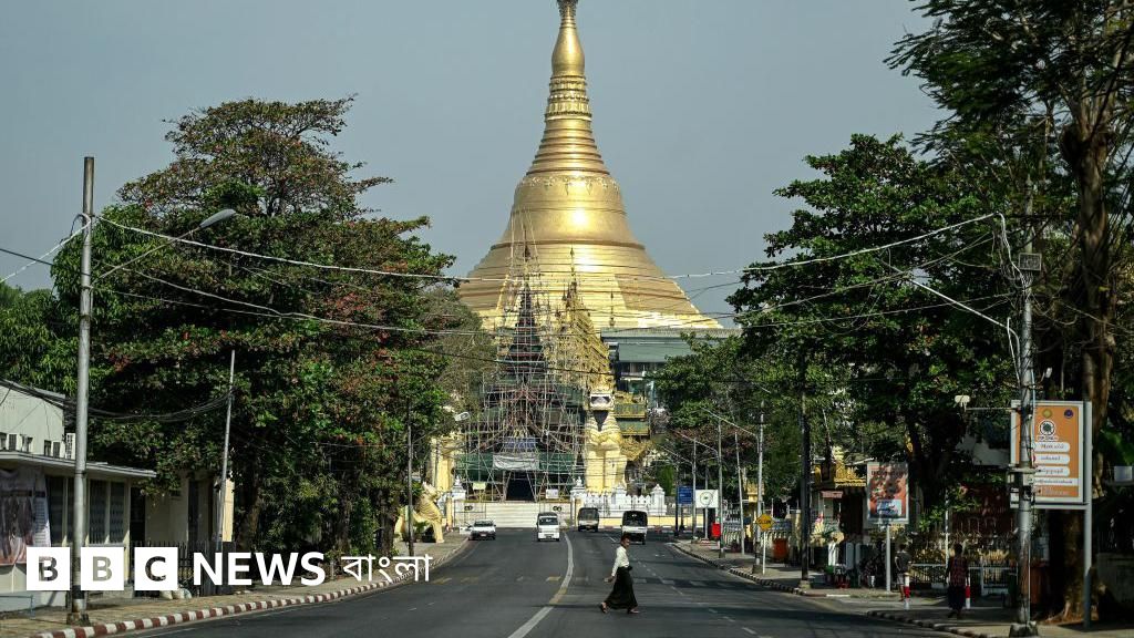 মিয়ানমার থেকে পাওয়া ছবিতে ইয়াঙ্গনের বাণিজ্যিক কেন্দ্রসহ দেশের প্রধান শহরগুলিতে রাস্তাঘাট জনমানবহীন দেখা যাচ্ছে।