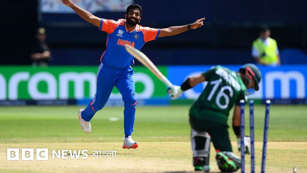 পাওয়ারপ্লেতে বুমরাহ পাকিস্তানের অধিনায়ক ও প্রধান ব্যাটার বাবর আজমের উইকেট নিয়ে নেন, এর আগে ২০২৩ সালের ওয়ানডে বিশ্বকাপেও বাবরকে আউট করেছিলেন বুমরাহ।