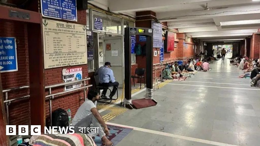 বিবিসির সংবাদদাতা দেখেন যে ‘অ্যাডমিশন ব্লক’এর বাইরে আবছা আলোয় সিঁড়িতে বসে আছেন রোগীর আত্মীয়-স্বজনরা। জরুরি বিভাগে ঢোকার মুখে দাঁড়িয়ে ছিলেন দুই পুলিশ সদস্য।