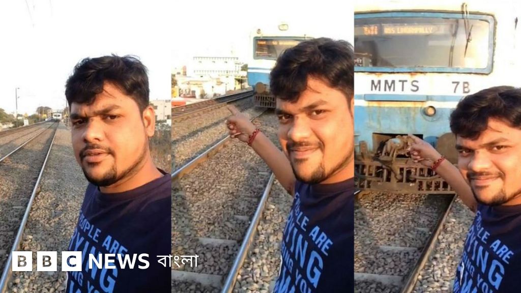ছুটে আসা এক চলন্ত ট্রেনের সঙ্গে রেল লাইনের ধারে দাঁড়িয়ে মোবাইল ফোনে নিজেকে ভিডিও করছেন এক তরুণ। ট্রেনটি খুবই কাছে চলে এসেছে। ভিডিওটিতে এরপর কি আছে তা আমরা এখানে দেখাতে পারছি না।