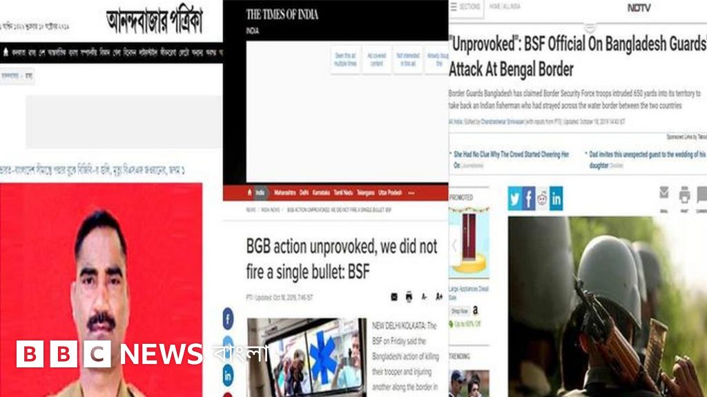 ভারতের অন্যতম শীর্ষ সংবাদমাধ্যম টাইমস অব ইন্ডিয়ার প্রথম পৃষ্ঠায় চার কলাম জুড়ে প্রধান শিরোনাম হয়েছে এই খবর। রিপোর্টে বলা হয়, পতাকা বৈঠকের পর বাংলাদেশের সীমান্তরক্ষীরা বিএসএফকে গুলি করেছে এবং এতে এক জওয়ান নিহত হয়েছে।