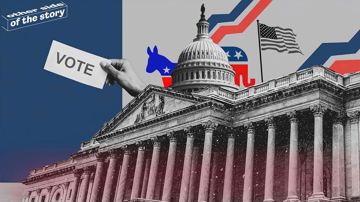 The two main US political parties are the Democratic Party whose candidate in 2024 was Kamala Harris, and the Republican Party whose candidate was Donald Trump.