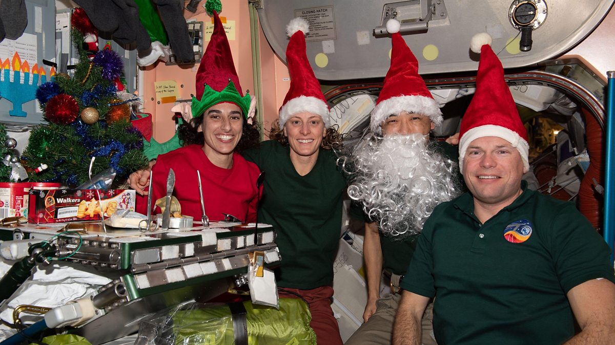 The ISS crew usually sends a special festive video message to Earth every Christmas Day, donning red Santa hats for the occasion.