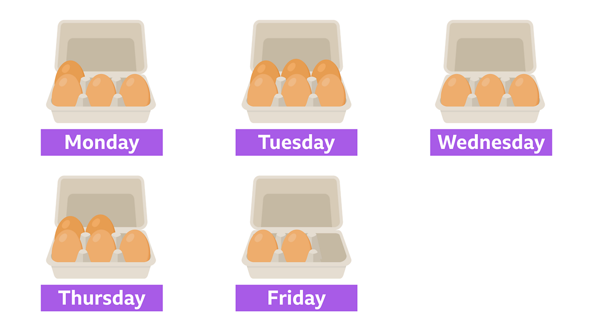 Put your logic skills to the test by seeing if you can work out how many eggs will appear in Saturday's carton. You've got Monday to Friday's to help you out.
