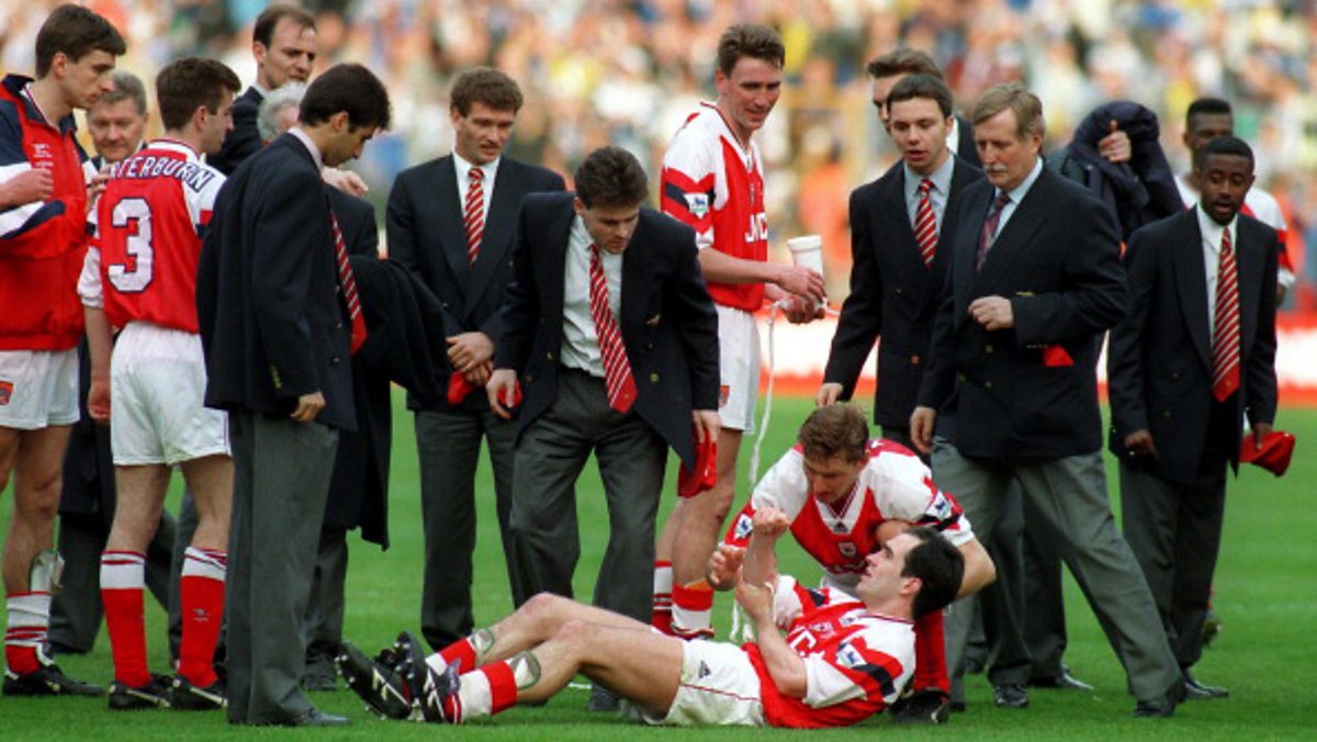 Unfortunately, Adams slipped and dropped Morrow who badly broke his arm after landing on the Wembley turf. The young midfielder was rushed to hospital, missing out on receiving his medal and the post-match celebrations.
