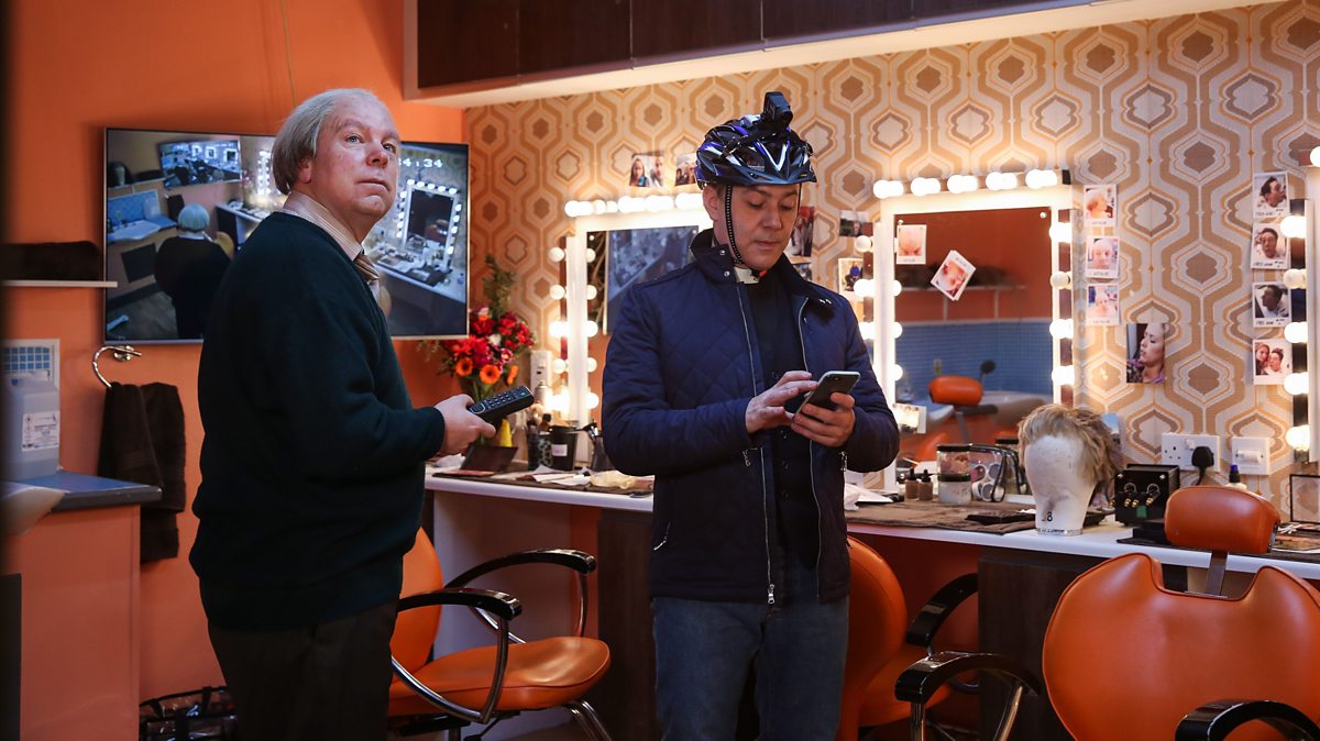 The cast were seen trying to figure out what was happening, exploring the set to uncover the mystery. Jumping around, the CCTV revealed apparently sinister characters in other parts of the set, folklore about a past fire at Granada Studios was woven into the narrative.