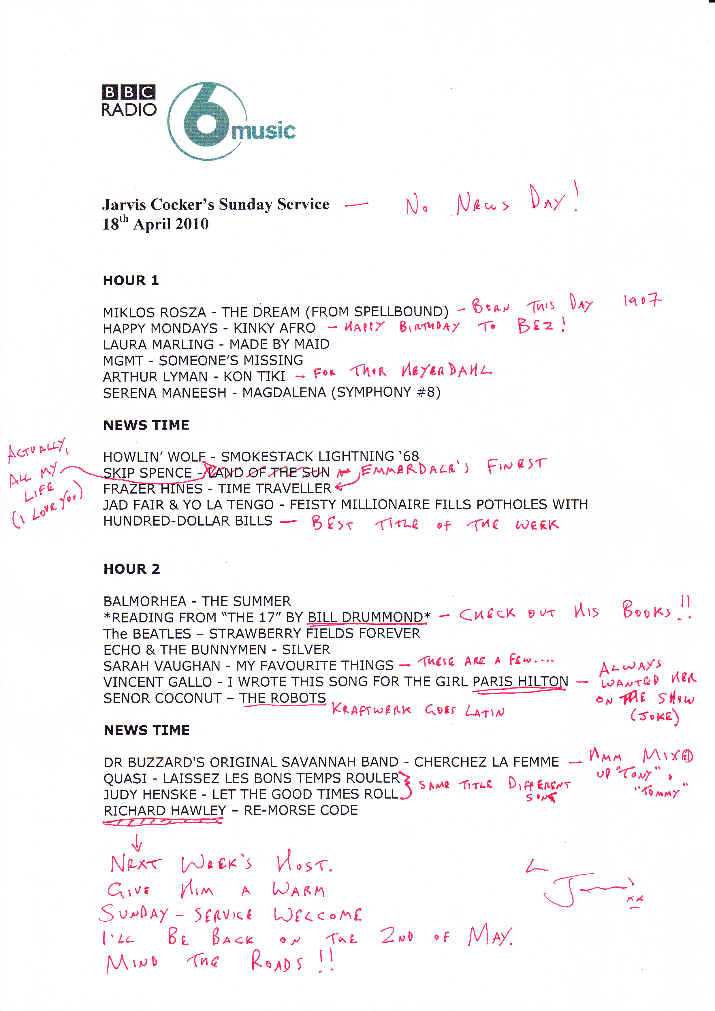 Download Jarvis' Easter tracklisting (PDF 433kb)