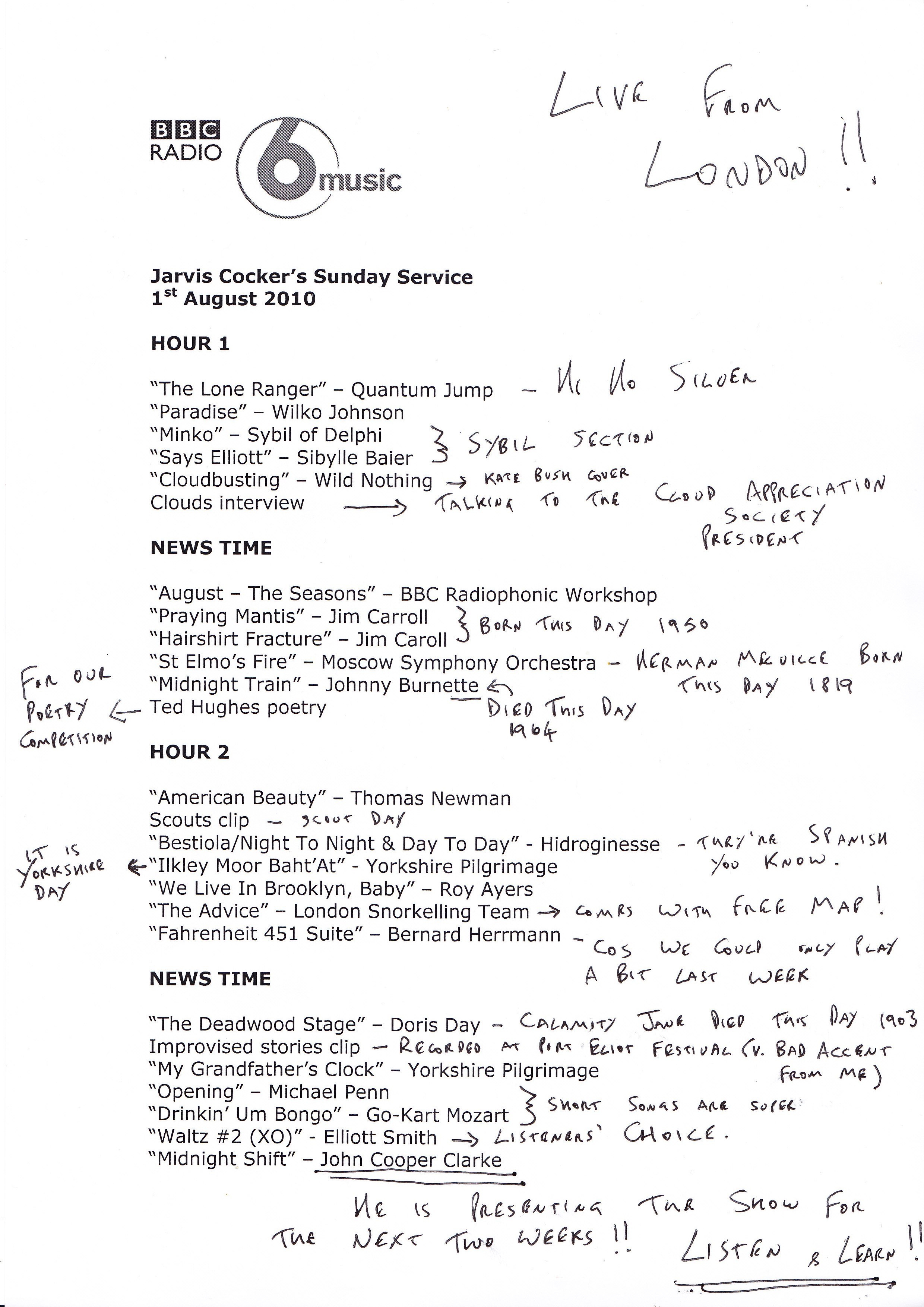 Here's a full run through of Jarvis' playlist from this weeks Sunday Service back from the Port Eliot festival and coming to you L L Live from our London studios.