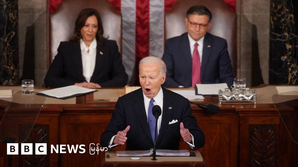 သမ္မတဘိုင်ဒင်ရဲ့ တစ်နာရီကြာ မိန့်ခွန်းထဲ လာမယ့် ရွေးကောက်ပွဲမှာ ပြိုင်ဘက် ဖြစ်လာဖွယ် ရှိတဲ့ ဒေါ်နယ်ထရမ့်ကို ပြစ်တင် ရှုတ်ချတဲ့ စကားတွေ ထပ်ပြန်တလဲလဲ ပြောဆိုခဲ့ပါတယ်။