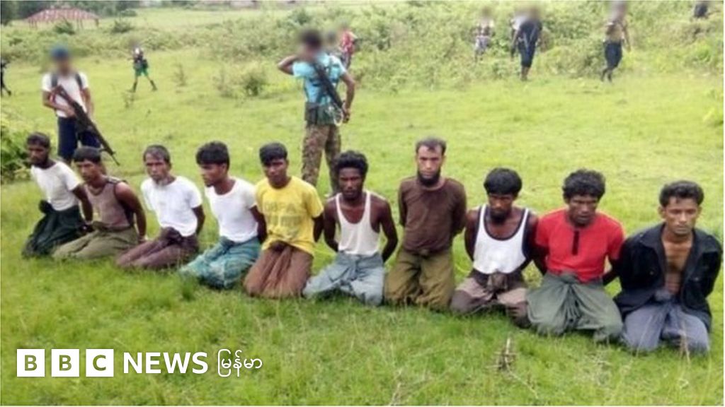 စစ်သားတွေက ရိုဟင်ဂျာ အမျိုးသား ၁၀ ယောက်ကို ရွေးထုတ် ဖမ်းဆီးခေါ်ဆောင်သွားခဲ့ပြီး စက်တင်ဘာလ ၂ ရက်နေ့က သင်္ချိုင်းတစ်ခုအနီး ခေါ်သွားခဲ့တဲ့ ညနေခင်းက ရိုက်ထားတဲ့ ဓာတ်ပုံမှာ အဲဒီ အမျိုးသားတွေ ရွာလမ်းကြားမှာ ဒူးထောက်နေတဲ့ပုံကို ဖော်ပြထားပါတယ်။