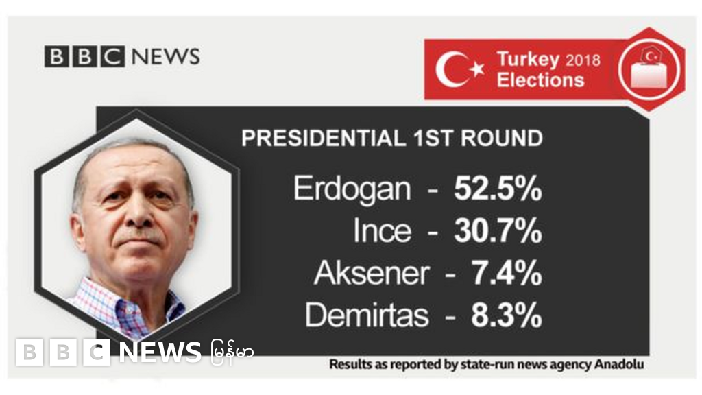 တူရကီ သမ္မတ ရွေးကောက်ပွဲ မှာ ရေတွက်ပြီးသမျှ မဲရလဒ် အရ ၅၃ ရာခိုင်နှုန်းနဲ့ အနိုင်ရနေတယ်လို့ ပြောနေတဲ့ လက်ရှိခေါင်းဆောင် Recep Tayyip Erdogan က ရုပ်မြင်သံကြား မှ တဆင့် မိန့်ခွန်းပြောရာမှာ ကျနော်တို့ နိုင်ငံ ဟာ ဒီရွေးကောက်ပွဲ အရ ဒီမိုကရေစီ နဲ့ ဘယ်လောက် နီးစပ်မှု ရှိသလည်း ဆိုတာ ကို နောက်တကြိမ် ထပ်မံ သက်သေပြ လိုက်တဲ့ အတွက် လာမဲ့ နှစ်တွေ မှာလည်း ဒီမိုကရေစီ ဟာ ခိုင်မာ အားကောင်းလာဖို့ပဲ ရှိကြောင်း ၊ ပြီးခဲ့တဲ့ ၁၆ နှစ် ကို ပြန်ကြည့်မယ် ဆိုရင် စစ်အုပ်ချုပ်မှု၊ နိုင်ငံရေး နဲ့ စီးပွားရေး အကျပ်အတည်းတွေ နဲ့ ရင်ဆိုင်ခဲ့ရလို့ တူရကီ နိုင်ငံ ရှေ့ဆက် ကြီးပွားတိုးတက်ဖို့ ဆက်လက်လုပ် ကြပါစို့ လို့ ပြောသွားခဲ့ပါတယ်။