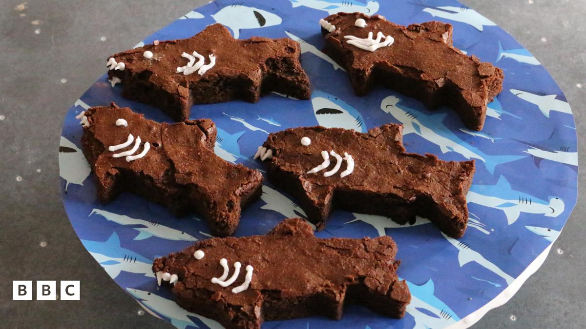 Fin-tastic shark-shaped chocolate brownies. Delicious!