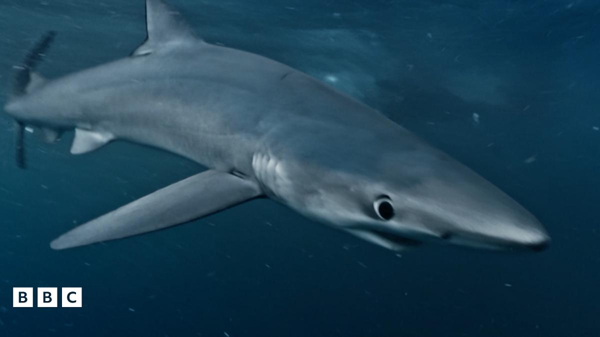 Steve dives with blue sharks in the waters of the UK. Blue sharks are fast, well-camouflaged predators with the ability to travel long distances in search of prey. It's so rare to see so many at the same time so Steve and the crew were very lucky to have this encounter.