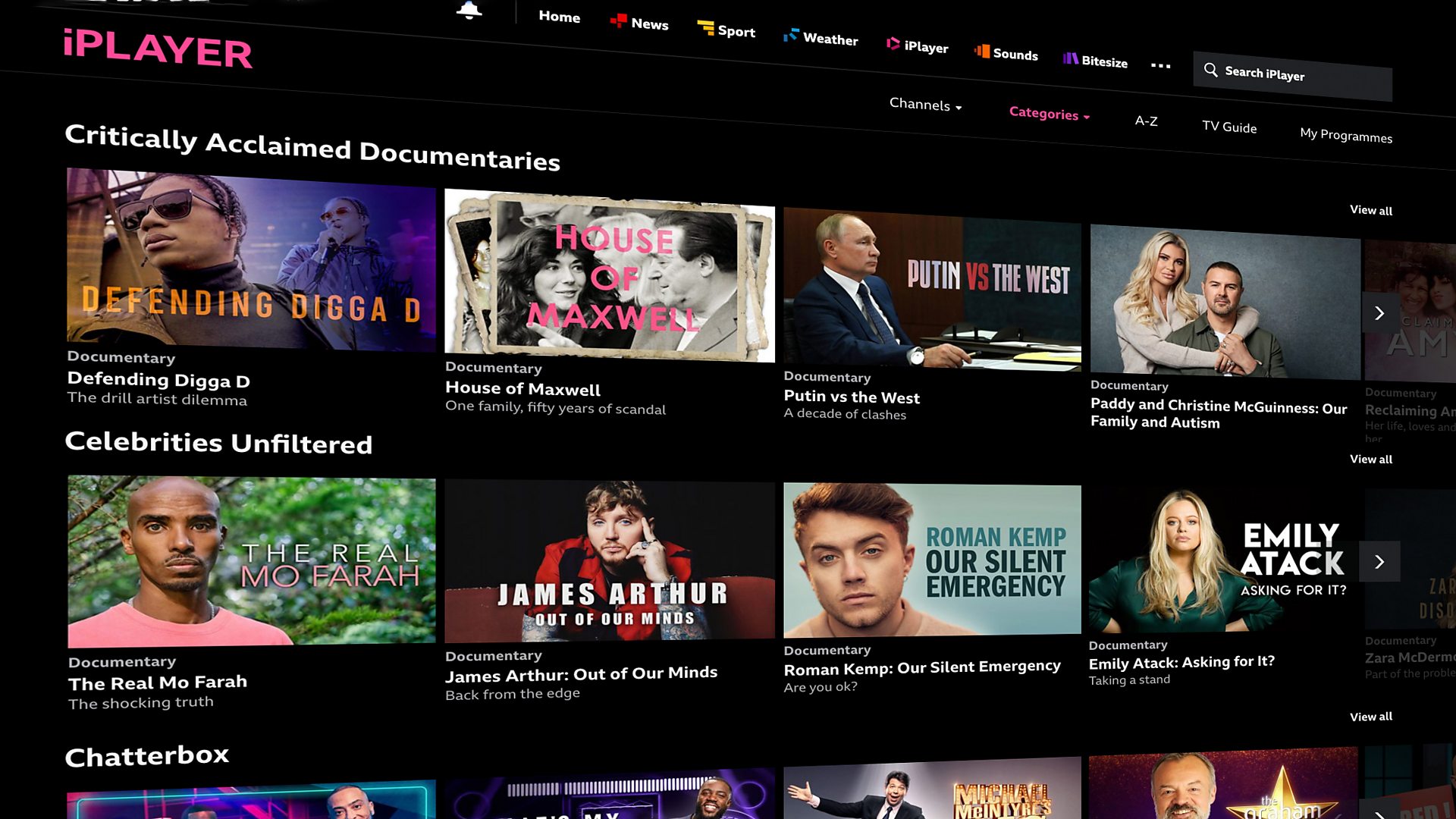 On iPlayer, we speak directly to those needs through our homepage curation. We have a constantly evolving range of collections to help group content by mood and occasion. Recently we’ve had success with ‘Epic Adventures’, ‘Secrets and Scandal’, ‘Critically Acclaimed’ and ‘Amazing Transformations’ collections.