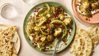 This spiced roasted cauliflower with a tahini, yoghurt dip makes a brilliant mezze dish that's packed with plants.