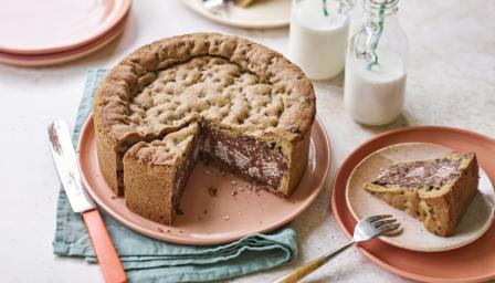 Nadiya’s chocolate cookie pie is made with cookie dough ‘pastry’ and filled with chocolate wafer bars, hazelnuts and chocolate spread. It’s not difficult to make but you will have to be patient as, once baked, it must be chilled overnight. Worth the wait!