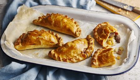 Bake the pasties for 1 hour, turning the tray around after 30 minutes so they brown evenly. Serve warm.