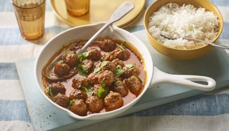 Remove the lid, increase the heat to medium and bubble away for 4–5 minutes until the sauce is really thick. Make sure to keep basting and turning the meatballs, so that the lamb stays super juicy. Garnish with the coriander and serve immediately with rice on the side.