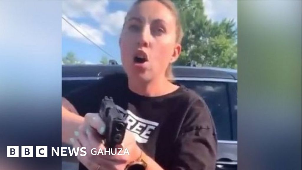 Umugabo n'umugore b'abazungu muri Amerika baragirizwa ivangura inyuma y'ayo umugore ashatse kurasa umwiraburekazi n'abana biwe inyuma y'imishamiraro.