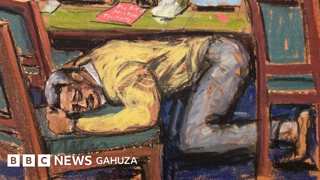 Uyu muhanzi wa hip-hop yahise agwa apfukamye umutwe we awutsindagira ku ntebe imbere y'ameza aho amaze amezi abiri aburanira ibyaha aregwa.